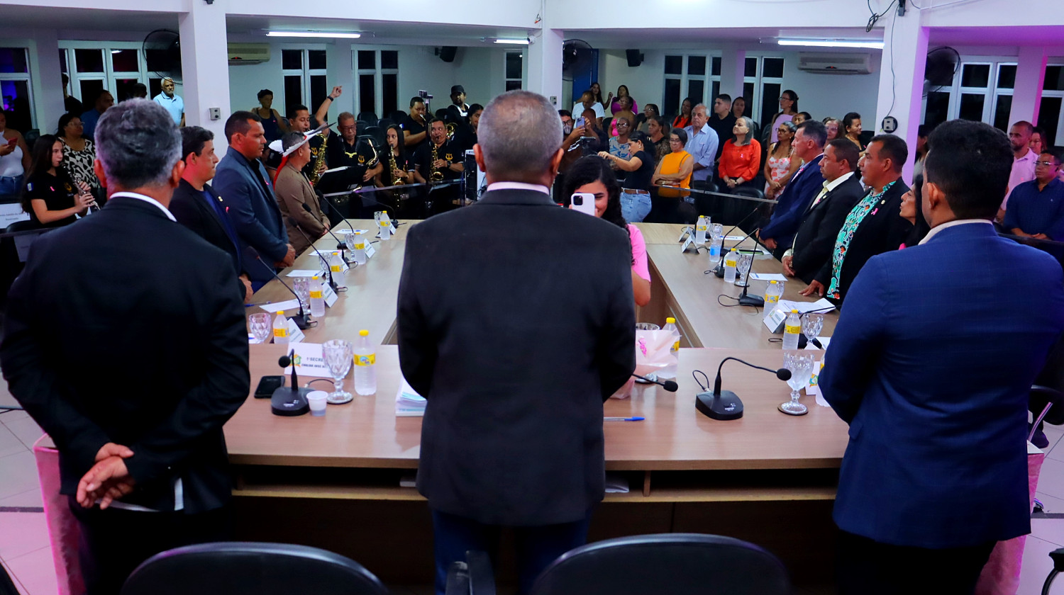 Durante seu pronunciamento, o presidente da Câmara, Dedé de França, saudou os vereadores, servidores e convidados, destacando o caráter democrático e participativo das decisões do Legislativo municipal.