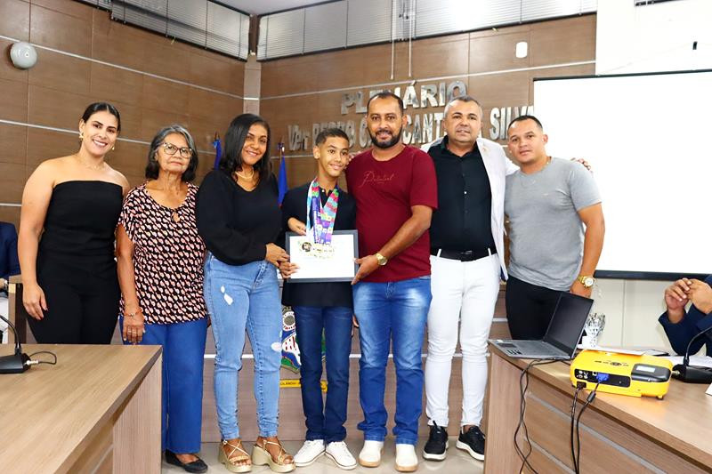 A Moção de Aplausos nº 013/2025 foi entregue ao atleta Vinícius Gabriel Teixeira Gomes, um jovem que superou desafios e conquistou três medalhas de ouro nas Paralimpíadas Escolares em Recife. A trajetória de Vinícius, que inspira por sua dedicação e força, foi celebrada com um vídeo e emocionou a todos. A mãe do atleta, Marl Teixeira, e a professora Islane Melo Bibi, falaram em nome do jovem, que expressou sua gratidão.